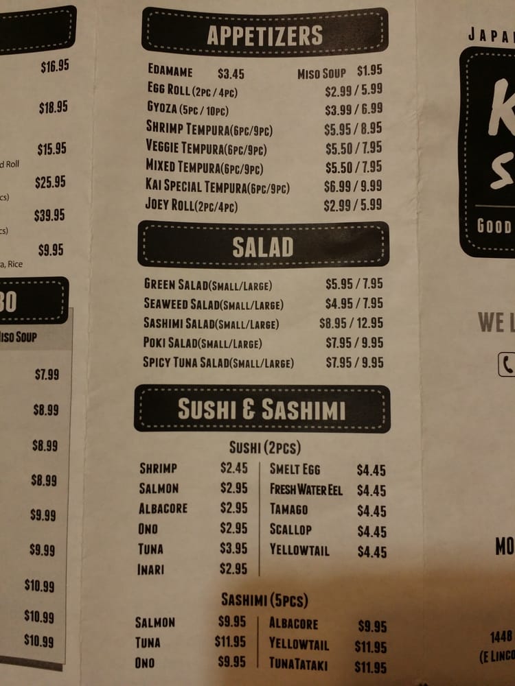 Kai Sushi, located in Orange, CA, is a charming spot offering delicious Japanese cuisine. With a modern and clean ambiance, it provides a relaxing and inviting atmosphere for diners. The menu boasts a variety of sushi options, including the highly recommended Tiger Woods Roll and the flavorful Bento Box with teriyaki chicken and spicy tuna roll. Customers rave about the freshness and presentation of the sushi, noting the friendly service and ample seating available. The staff is courteous and attentive, ensuring a pleasant dining experience. The gem of Kai Sushi lies in its fresh fish and generous serving sizes, leaving patrons satisfied and coming back for more. This Asian-owned, women-owned establishment is a must-visit for sushi lovers seeking a delightful dining experience.